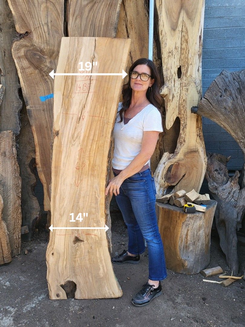 This surfaced olive slab measures 67” in length with beautiful natural character and rich movement throughout the grain. Its warm tones and organic figuring make it a standout choice for smaller statement pieces that still carry a strong presence. Ideal for a console, entry table, coffee table, vanity, or custom shelving, this slab offers a versatile size with the one-of-a-kind beauty that makes olive wood so special.